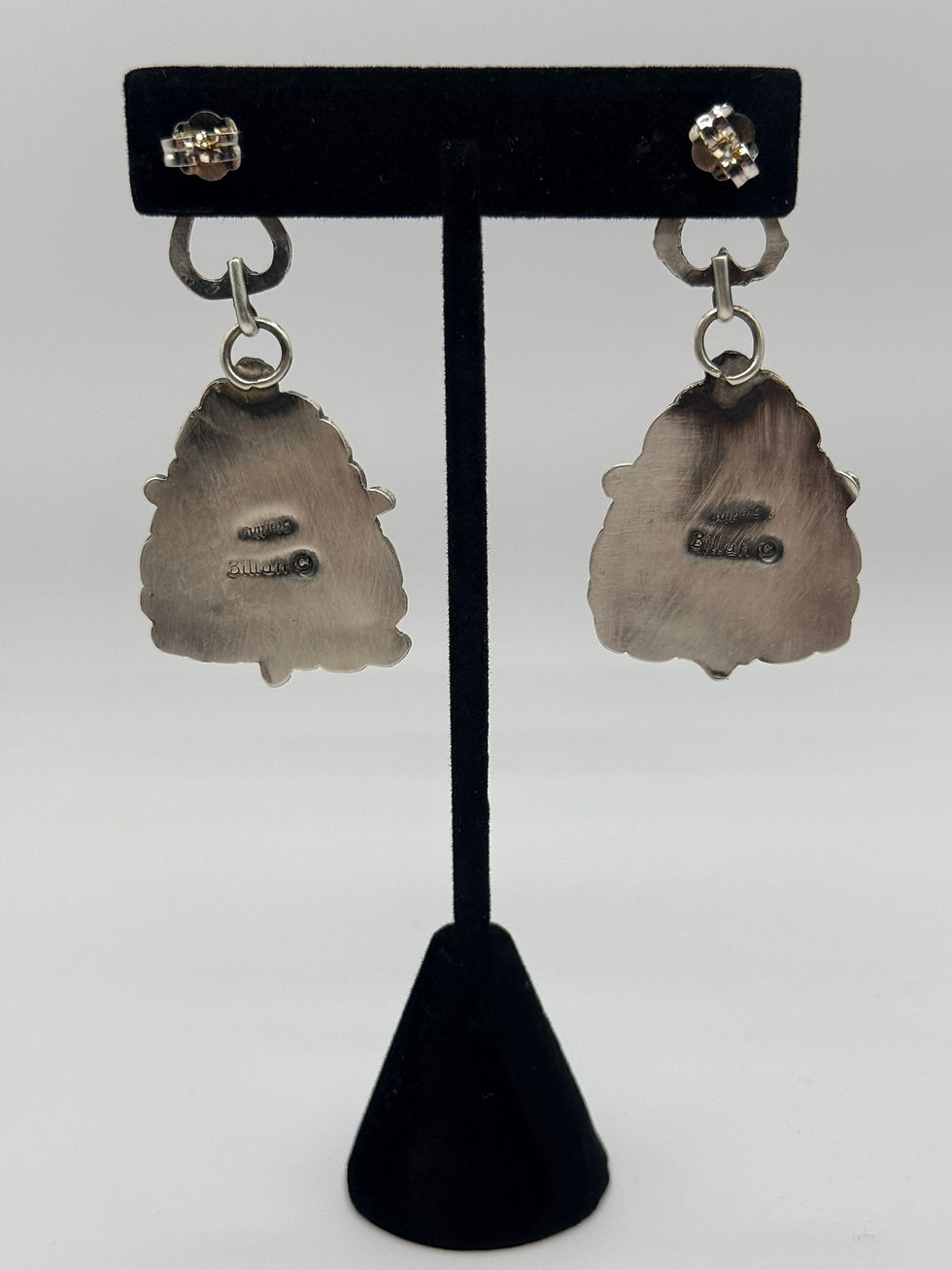 Stamped Sterling Silver Floral Double Panel Dangle Earrings – J. Labo, Navajo Ma